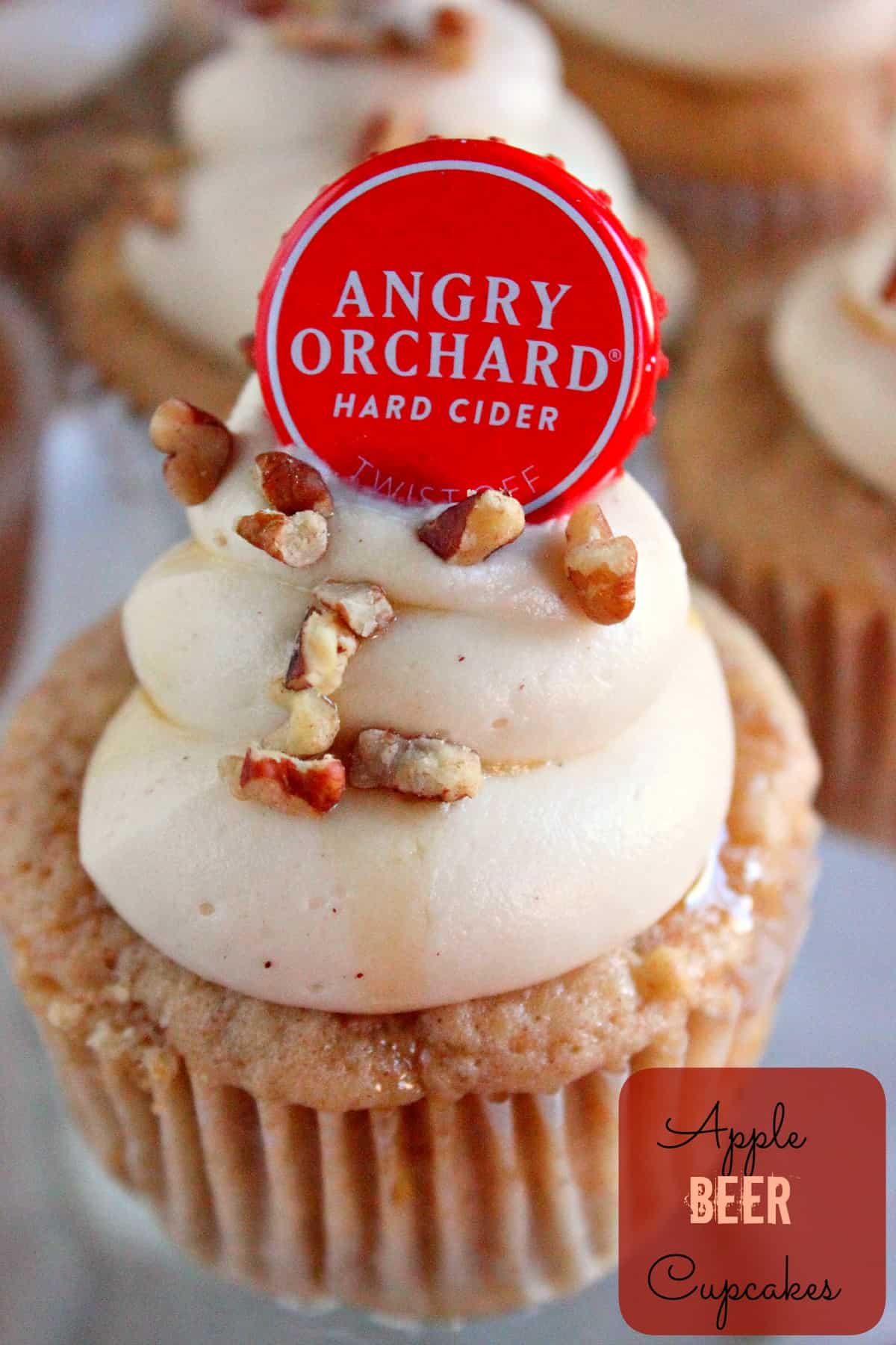 Adding Angry Orchard Apple Beer to your cupcakes enhances the flavor of these moist and delicious cupcakes. Topped off with a creamy cream cheese frosting, drizzled in maple syrup, and topped off with pecan pieces makes these cupcakes great for the fall.